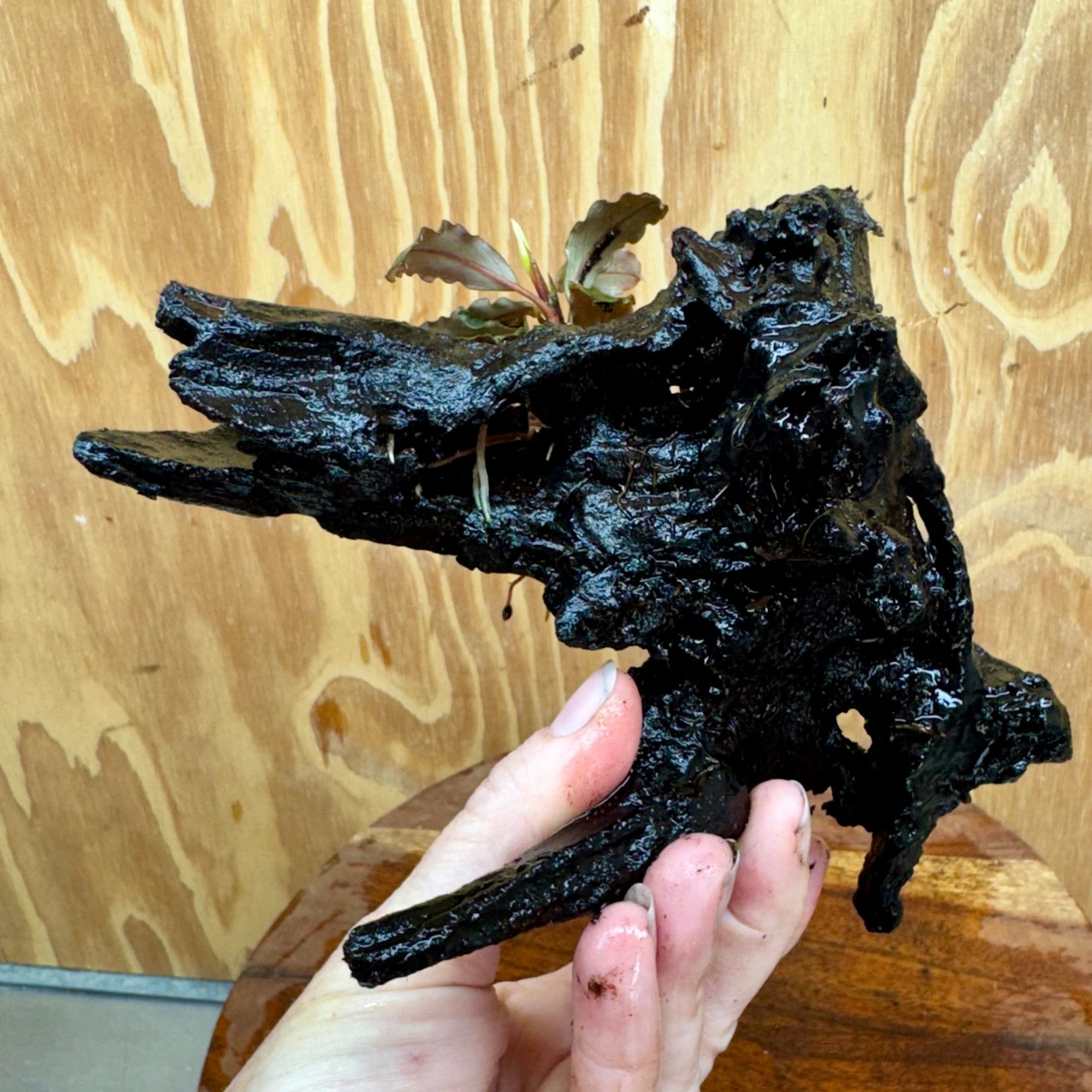 Unique Driftwood planted with one Bucephalandra Plant - ONE ONLY