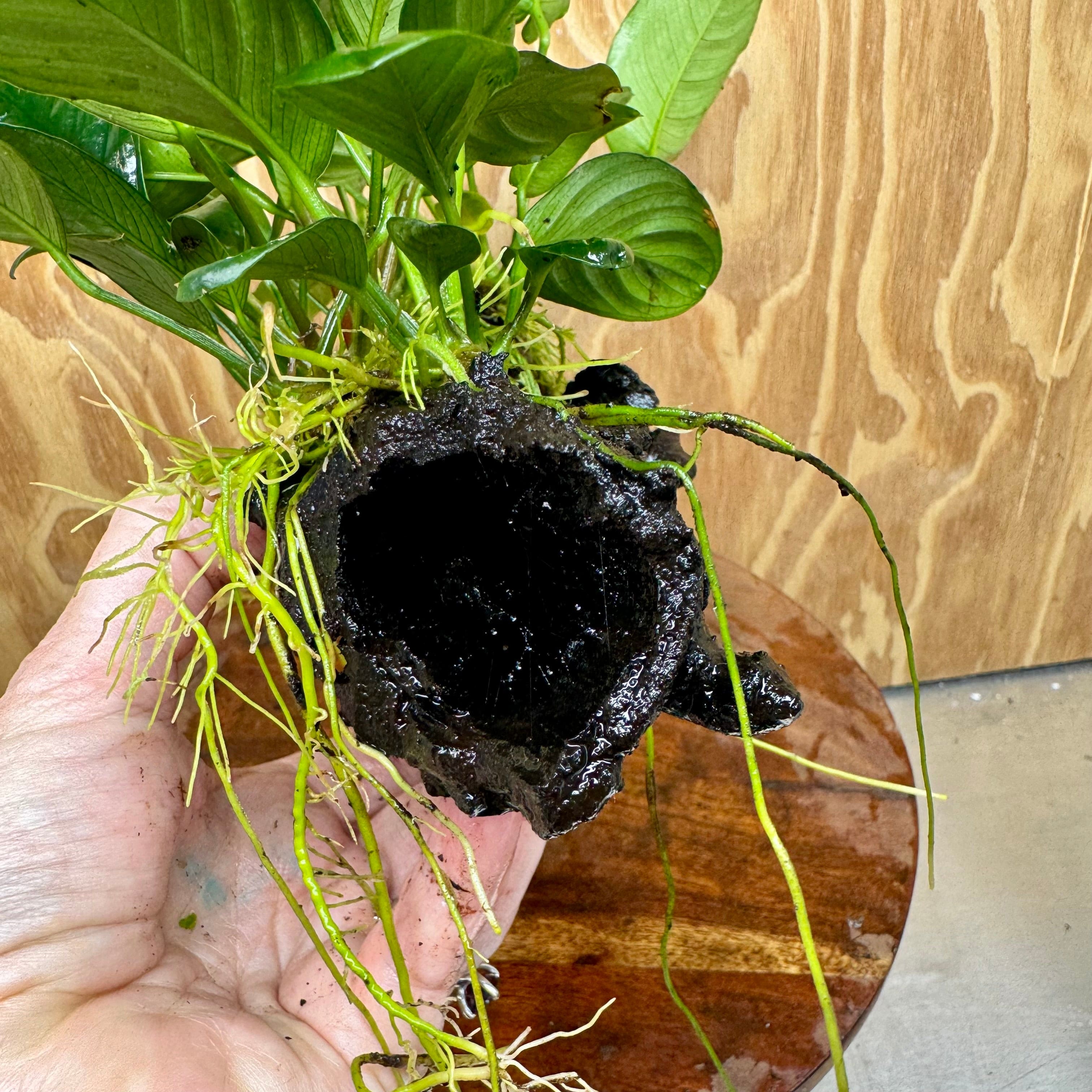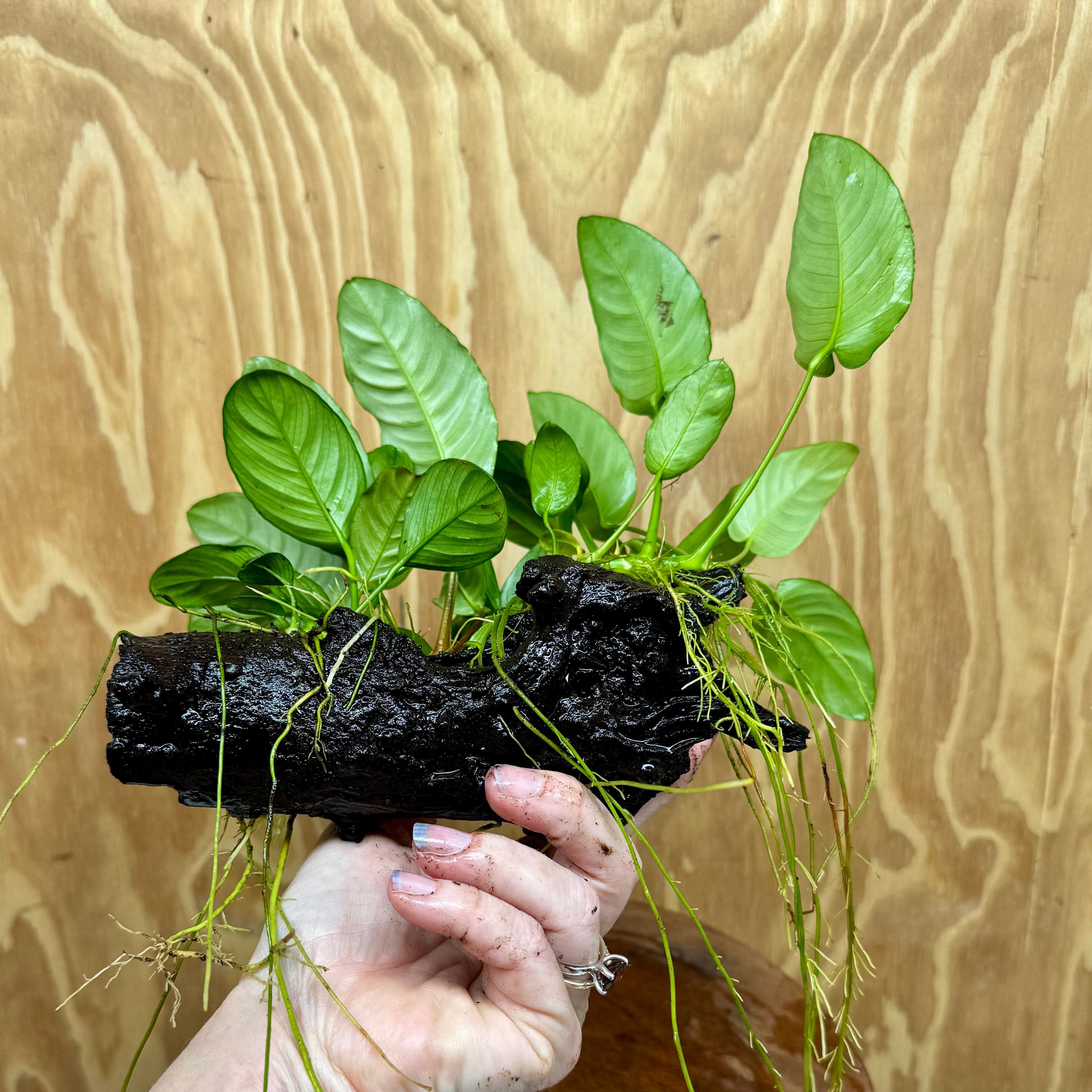 The leaves on an Anubias grow from a creeping rhizome and the roots are primarily used as anchorage instead of a nutrient uptake system. The rhizome should not be buried in the substrate. Anubias are ideal for growing on Driftwood, Rock and Terracotta and are very popular in our Creations Range.