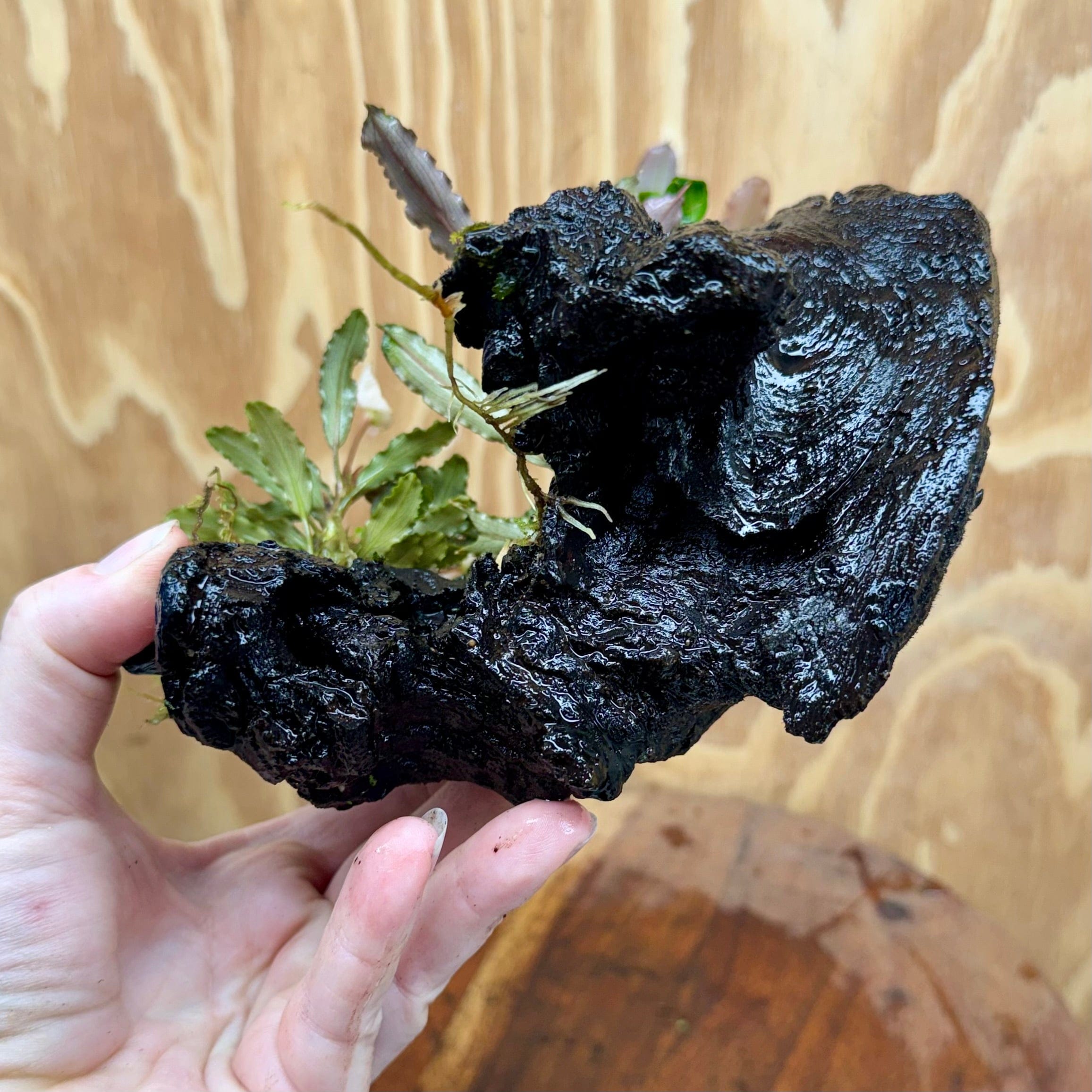 Triple Bucephalandra plus Petite Nana Driftwood Creation - One Only - Wave